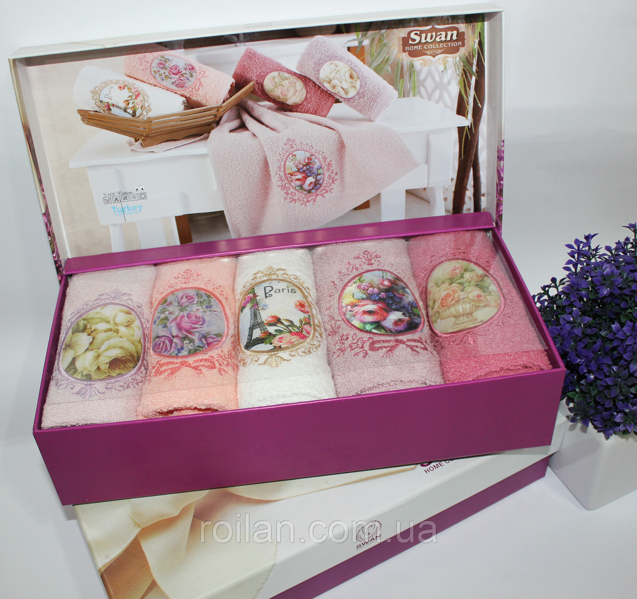 До набору входить п'ять рушників — 40 х 60 см